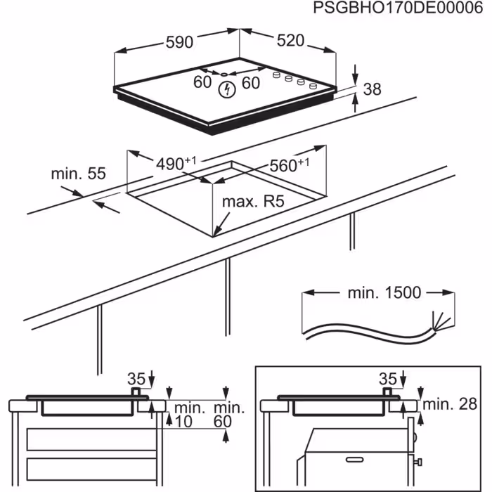 Electrolux EHF6547FXK рассчитана на подключение к сети 220–240 В или 400V2N, оснащена кабелем длиной 1,5 метра и проста в установке. Это удобное решение для тех, кто ищет функциональную электрическую варочную панель с расширенными зонами нагрева и логичным управлением.
