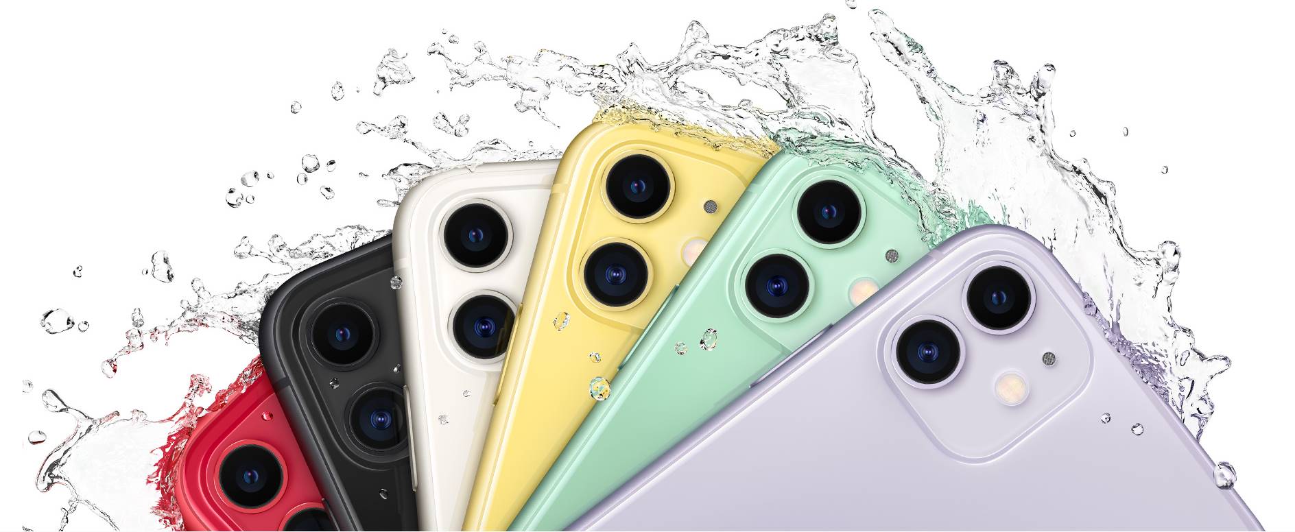 Дизайн. iPhone 11 поражает своей яркостью! 6 удивительных оттенков украшают корпус новинки 2019-ого года: Purple (нежный, ближе к сиреневому цвету), Green (данному оттенку подошло бы больше название – мятный), Yellow (ну, очень ярко!), RED (PRODUCT), и классические чёрный и белый. Корпус нового айфона выполнен в глянцевом стекле, которое отражает очень много света, за счёт чего все цвета корпуса насыщенные, глубокие. Хотя на них и видны, к сожалению, следы от отпечатков пальцев. Уровень водонепроницаемости остался прежним IP68, но он качественно улучшился – теперь вы можете погружать свой последний iPhone в воду на глубину до двух метров и плавать там с ним до 30 минут. Кстати, задняя панель лишилась фирменной надписи iPhone.